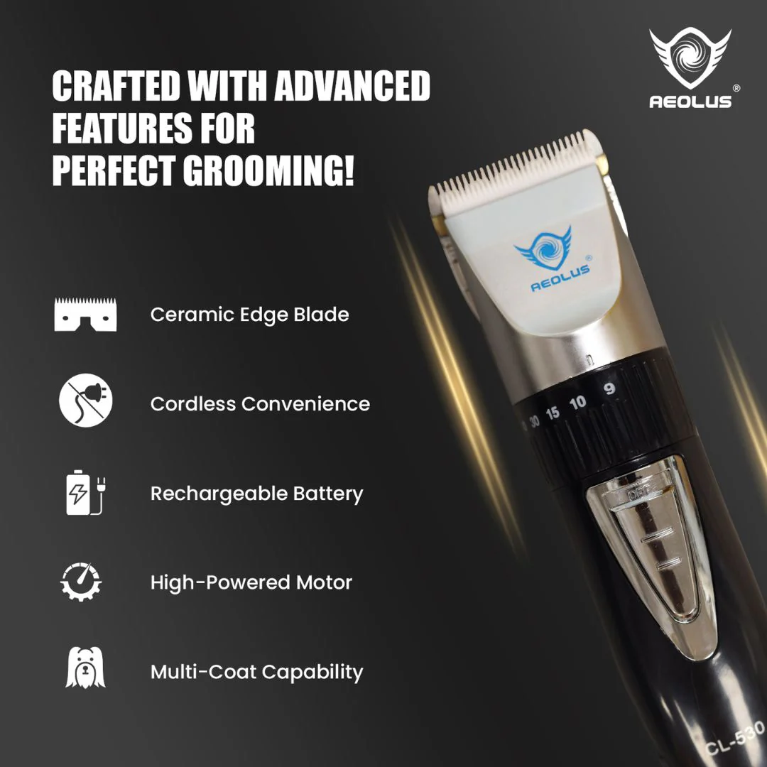Achieve professional-level grooming with the Aeolus CeramicEdge Cordless Clipper (CL-530) – a compact, powerful, and ergonomic tool built for efficiency and comfort. With a 5-stage adjustable ceramic blade, this clipper lets you switch seamlessly between cutting lengths, making it ideal for precise grooming across all coat types.